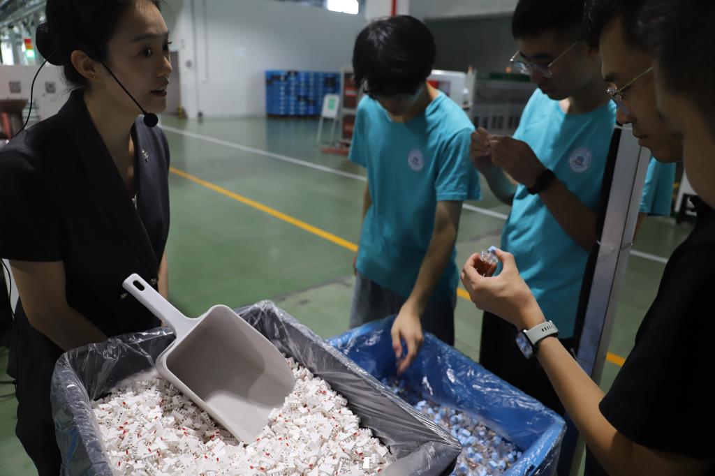从中央实验室的精密检测,到自动化厂区的机械臂作业,再到数字化物流中心的智能分拣—— 公牛集团技术负责人带着实践队,全程拆解了墙开、转换器、插排、充电桩等低压电器的 “诞生全流程”。而最让学子们震撼的,是核心部件 “电触头” 的严苛 “闯关记”。