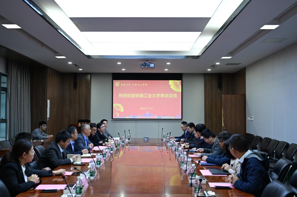 11月12日,校党委常委、副校长闵凡飞率队赴南京大学化学化工学院调研交流。校学术副校长龙亿涛、南京大学化学化工学院党委书记朱成建、南京大学相关团队负责人以及我校材料科学与工程学院、化学与化工学院负责人、教师代表参加活动。