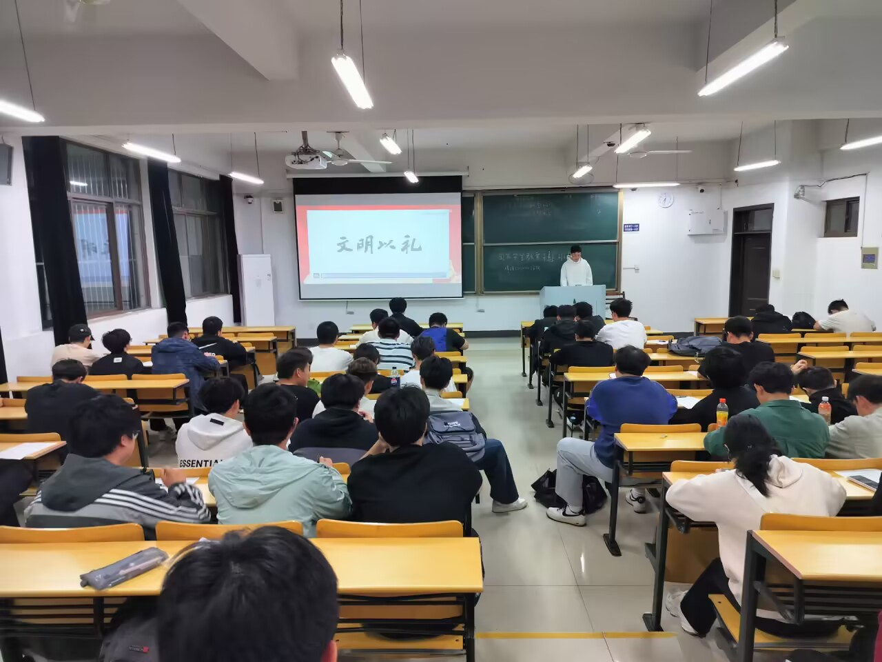 活动期间,各班创新融合专业特色与礼仪教育。料233班编排《校园礼仪那些事》情景剧,将实验室规范操作、学术交流礼仪等场景搬上班会舞台;氢241班设计“材料人文明誓词”,巧妙嵌入“纳米材料的细致”等专业术语;超80%班级自主开展文明礼仪知识竞赛,累计收集学生撰写的文明感悟随笔482篇。学院先后四期推出“三礼”教育系列推文,构建起线上线下联动的学习矩阵。4月28日下午,校第四届大学生宣讲团应邀深入材料科学与工程学院开展宣讲活动,材料学院2024级全体学生参加活动。