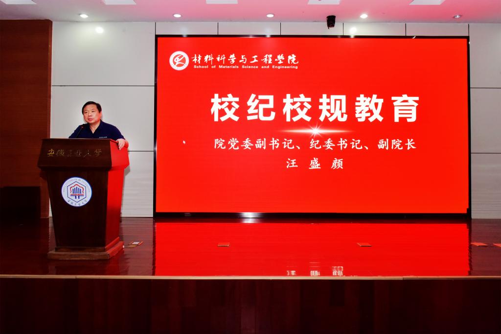 院党委副书记、纪委书记、副院长汪盛颜向新生们开展了校纪校规教育。他围绕防范电信诈骗,电动车治理,人身安全、宿舍安全等方面开展了专题教育。解读了学校相关规章制度,强调了遵守校纪校规的必要性。他希望新生们能够将校规校纪内化于心、外化于行,以良好行为规范树立优秀学风与校风。