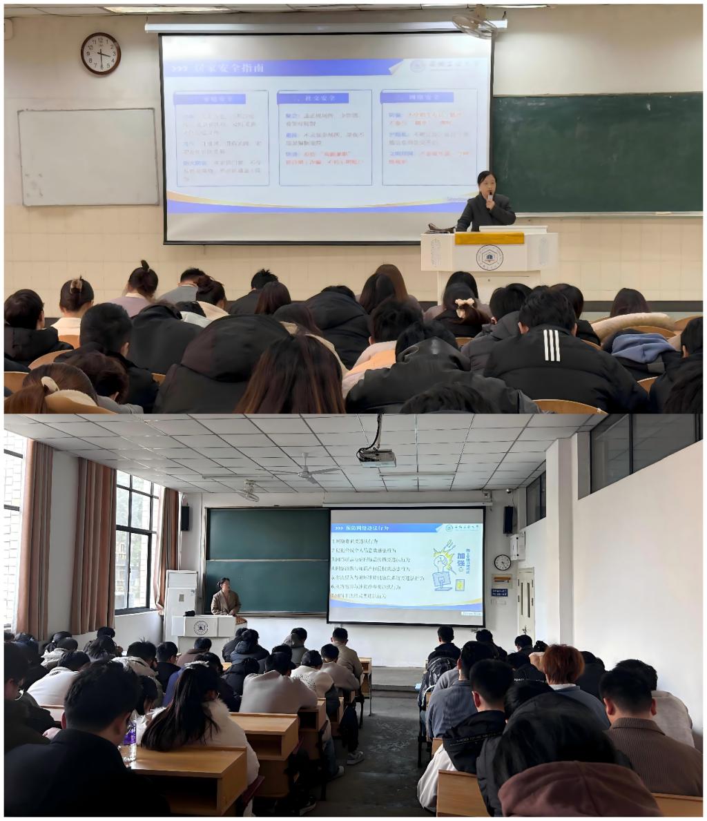 为进一步强化寒假前后研究生教育管理,筑牢研究生安全防范屏障,1月16日下午,材料学院分别在东区阶教101、本部教一106组织召开寒假研究生安全教育专题会议,对 2026年寒假前后研究生教育管理工作作出全面部署,全体研究生参会。